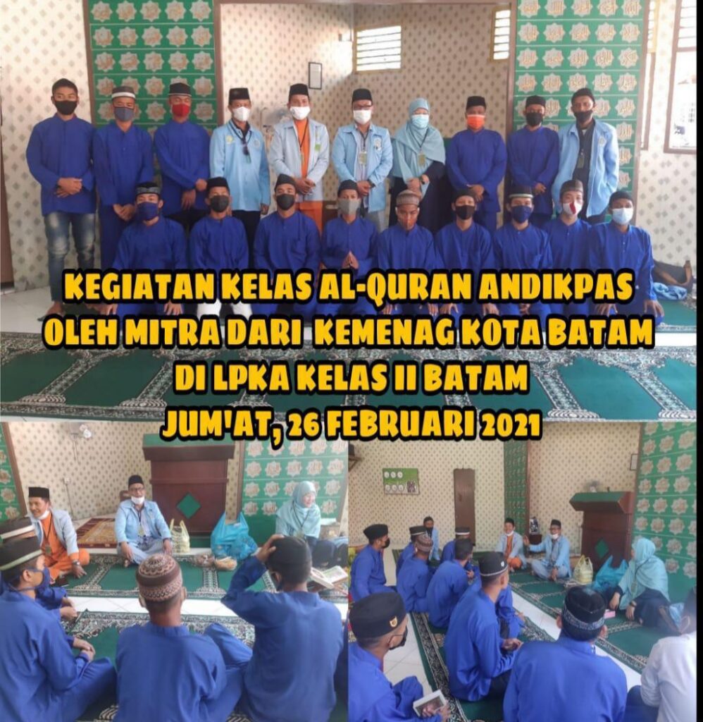 Pengajian ini, tentunya diikuti bagi Andikpas yang Muslim dalam kelas Alquran (mengaji) di Mesjid At-Taubah yang ada di LPKA Batam bekerja sama dengan bimbingan oleh mitra penyuluh dari Kantor Kementerian Agama (Kemenag) Kota Batam.