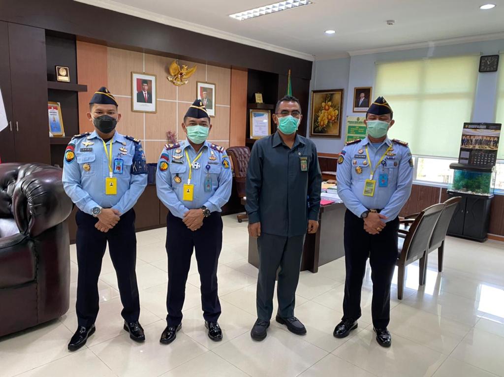 Kepala Lembaga Pemasyarakatan (Lapas) Kelas IIA Batam Dannie Firmansyah didampingi Kepala Rumah Tahanan Negara (Rutan) Batam Yan Patmos dan Kepala Pengamanan (KPLP) Lapas Kelas IIA Batam Said Afrizal kunjungan silaturahmi ke Ketua Pengadilan Negeri Wahyu Iman Santoso, Selasa (02/02/2021). (photo: dok/lapas barelang)