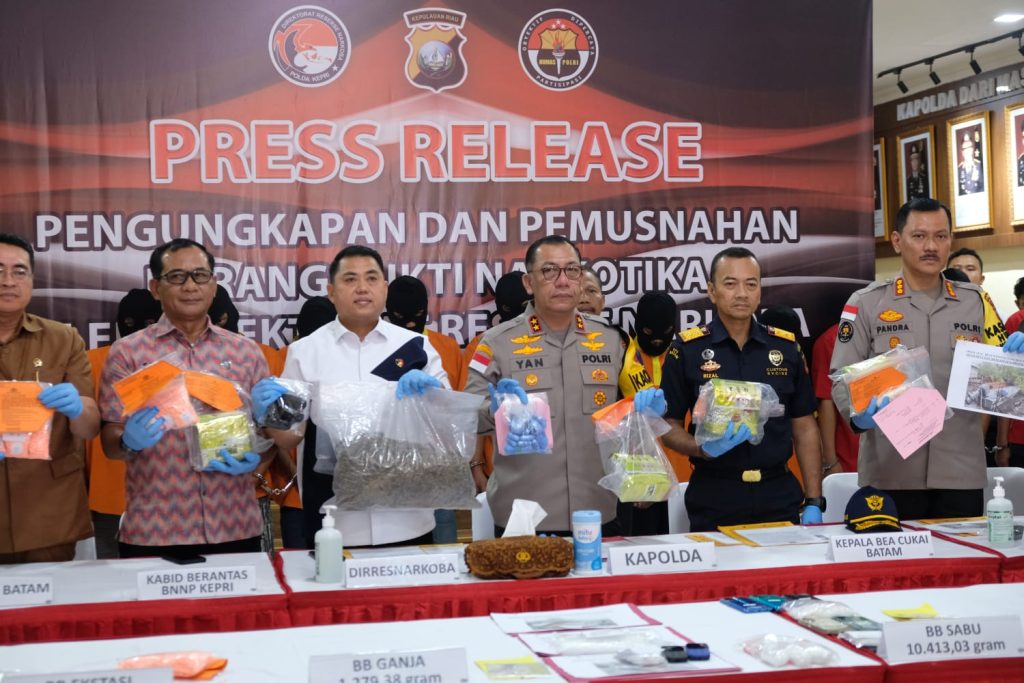 Selanjutnya dilakukan pemusnahan yang langsung dipimpin oleh Kapolda Kepulauan Riau, Irjen Pol Yan Fitri Halimansyah bertempat di halaman utama Kantor Kepolisian Daerah Kepulauan Riau dengan dibakar menggunakan mesin incenerator.