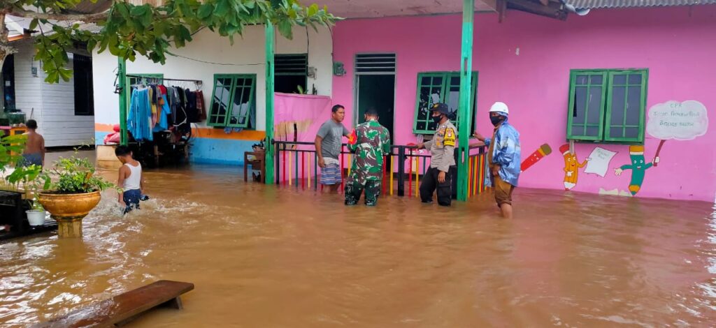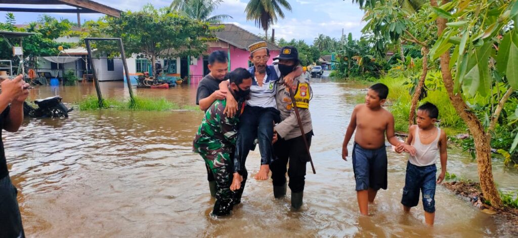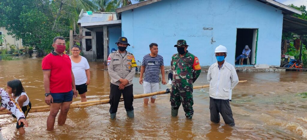 Disinilah, terlihat kesiapsiagaan dan sinergitas personil TNI- Polri yakni Bhabinkamtibmas dan Babinsa setempat dengan seketika turun ke lapangan untuk membantu warga yang rumahnya terendam akibat banjir yang melanda tersebut.