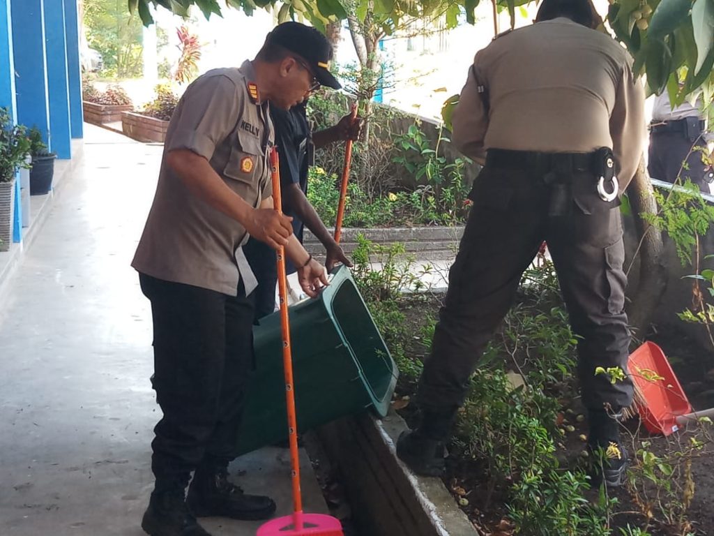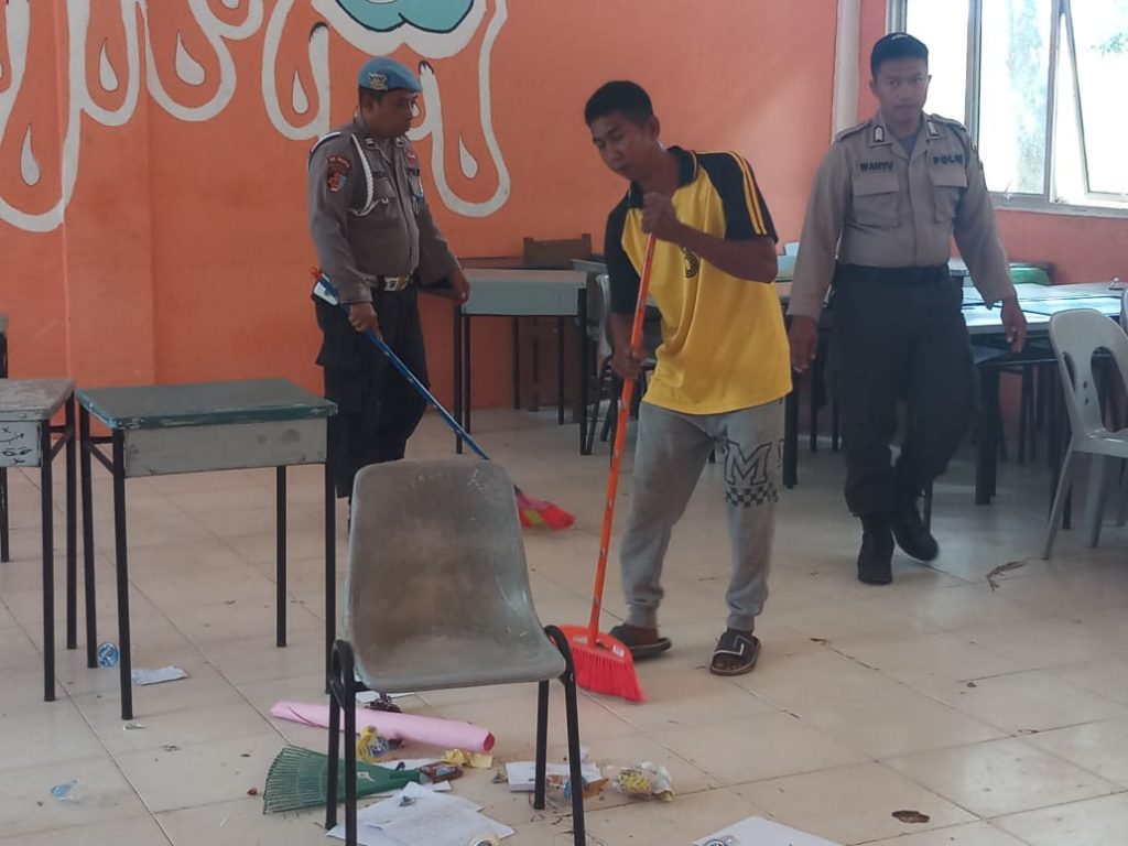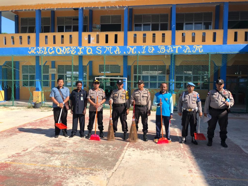 PROBATAM, CO, Batam – Kapolsek Galang AKP Herman Kelly bersama majelis guru SMA Negeri 10 Batam, hari ini, Selasa (17/3/2020) melaksanakan kegiatan korve dan bersih-bersih di lingkungan SMA Negeri 10 Batam, di Kampung Sijantung, Kelurahan Sijantung, Kecamatan Galang, Kota Batam.
