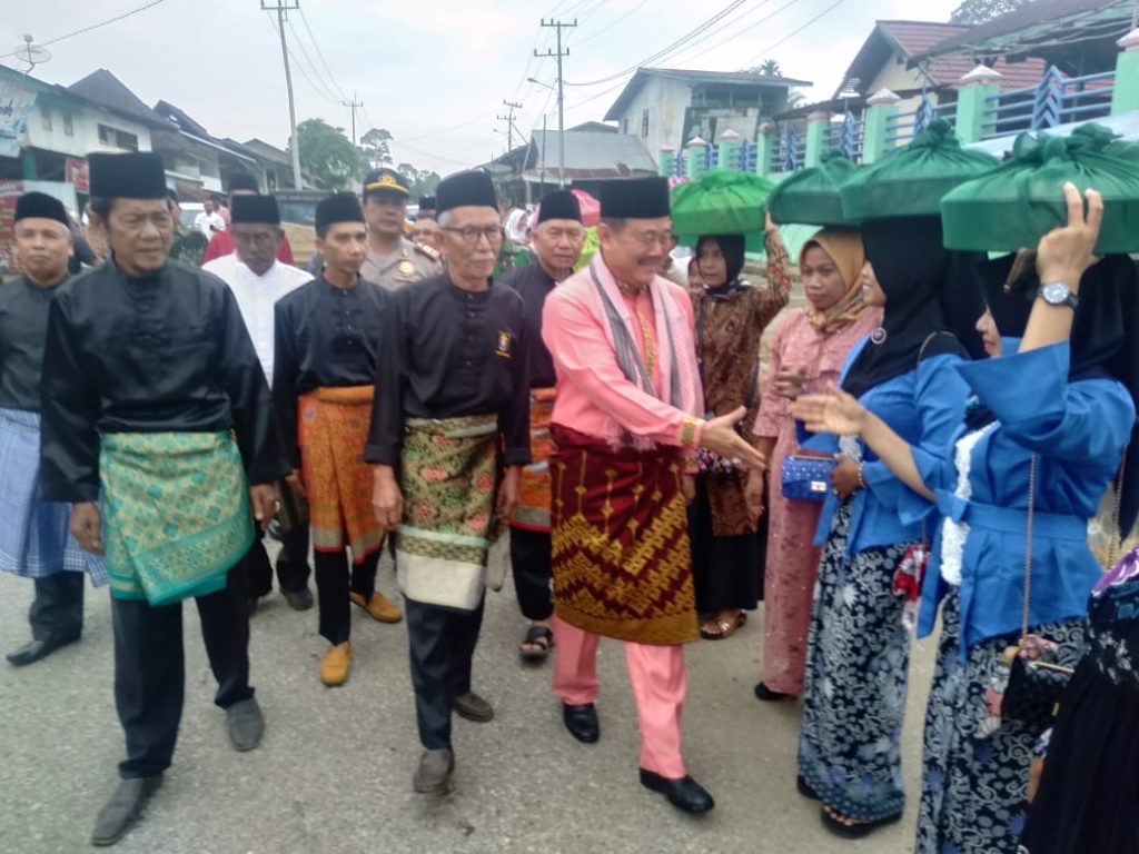 PROBATAM.CO, Teluk Kuantan – Wakil Bupati Kuansing H.Halim, diarak berjalan kaki dari Pasar Inuman ke Gedung Serbaguna Kecamatan Inuman, Rabu (20/11).
