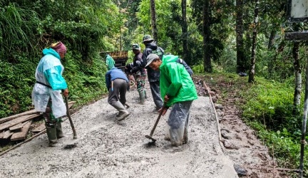 PROBATAM.CO, Bandung – Pengecoran sasaran fisik jalan rabat beton di Desa Cipelah terus dikebut, anggota satgas dan masyarakat dibagi menjadi dua shif.