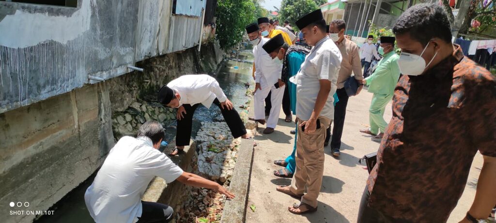 PROBATAM.CO, Batam – Gubernur Kepulauan Riau (Kepri) H. Ansar Ahmad bersama Kadis PUPR Provinsi Kepri Abu Bakar dan didampingi Camat Sagulung Kota Batam Reza Khadafi meninjau parit utama di Perumahan Puri Barata RW 18 RT I Kelurahan Sagulung Kota, Sagulung, Kota Batam sebelum menunaikan sholat Jumat di masjid Nurul Ihsan.
