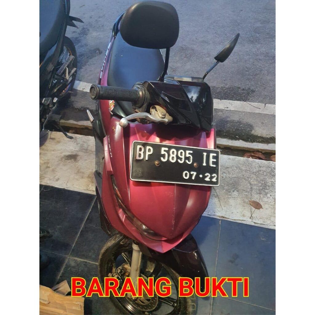 Barang bukti yang berhasil di amankan berupa 1 Unit Sepeda Motor Mio Soul GT Warna Ungu BP 5895 IE (sebagai Sarana)