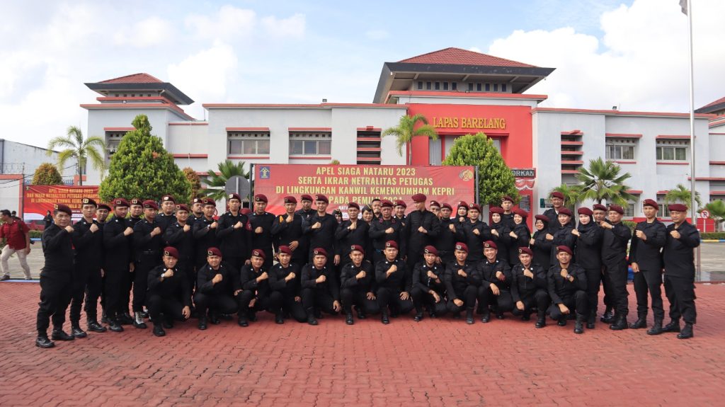 PROBATAM.CO, Batam – Dalam rangka menyambut perayaan Natal dan Tahun Baru (Nataru), UPT Pemasyarakatan Se Kota Batam menggelar Apel Siaga Bersama yang diikuti oleh seluruh KA UPT Pemasyarakatan Se Kota Batam,Jajaran pejabat struktural dan Seluruh pegawai Lapas, LPKA, Lapas Perempuan dan Rutan Batam, Senin (18/12/2023).