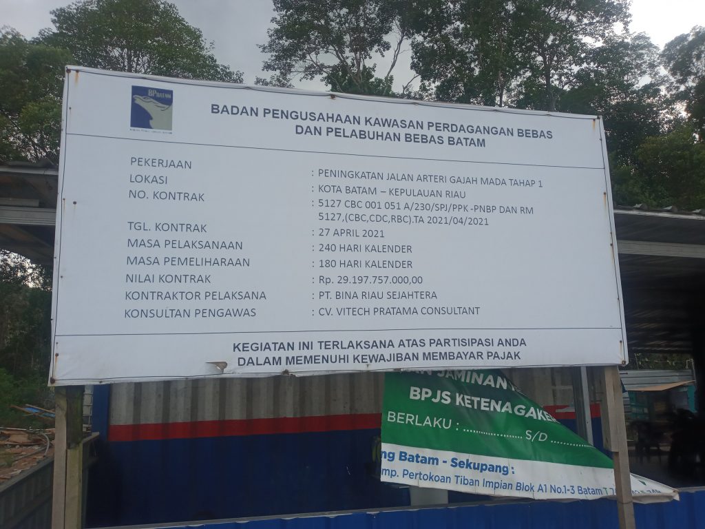 PROBATAM.CO, Batam– Progres pengerjaan Jalan Alteleri Gajah Mada Tahap I Batam, Kepulauan Riau (Kepri) yang dikerjakan PT BINA RIAU SEJAHTERA, dan menelan dana APBN, TA 2021 senilai Rp29.197.757.000 terkesan tergesa-gesa menjelang akhir tahun.