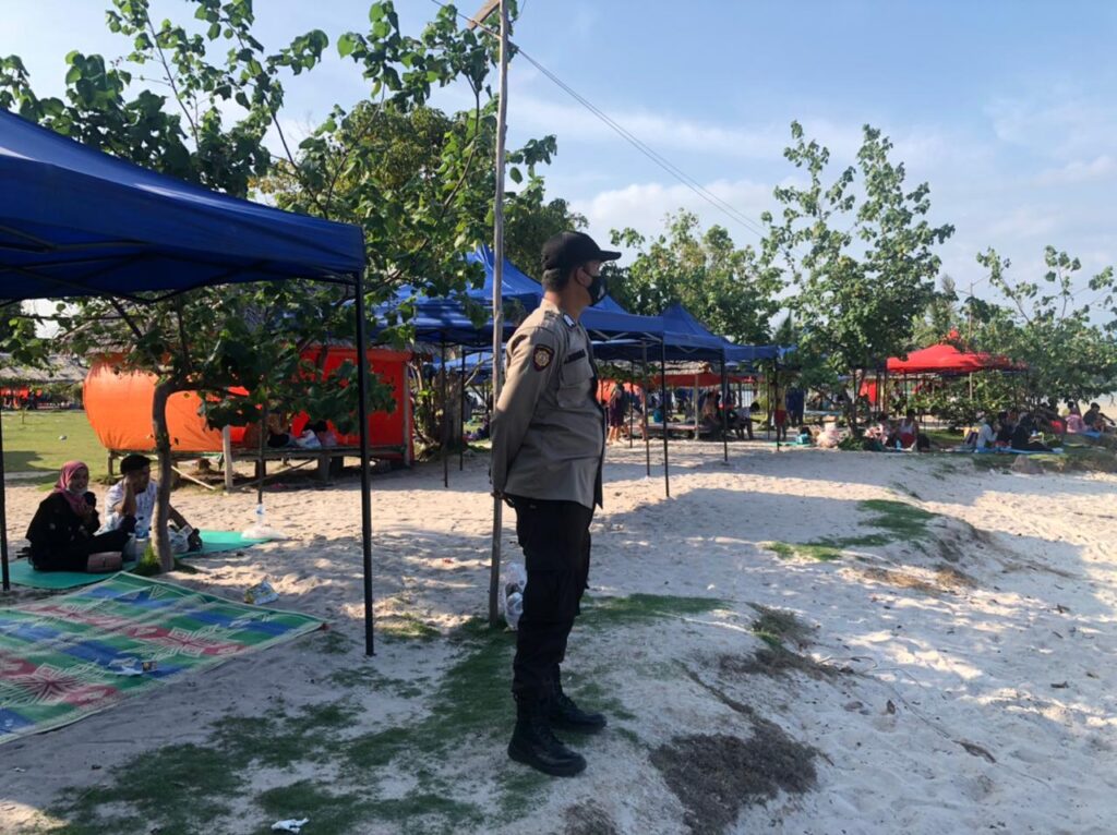 PROBATAM.CO, Batam- Polsek Galang laksanakan patroli himbauan dalam rangka penerapan adaptasi kebiasaan baru di sejumlah tempat Objek Wisata yang ada di Kecamatan Galang, Kota Batam, Minggu (11/4/2021).