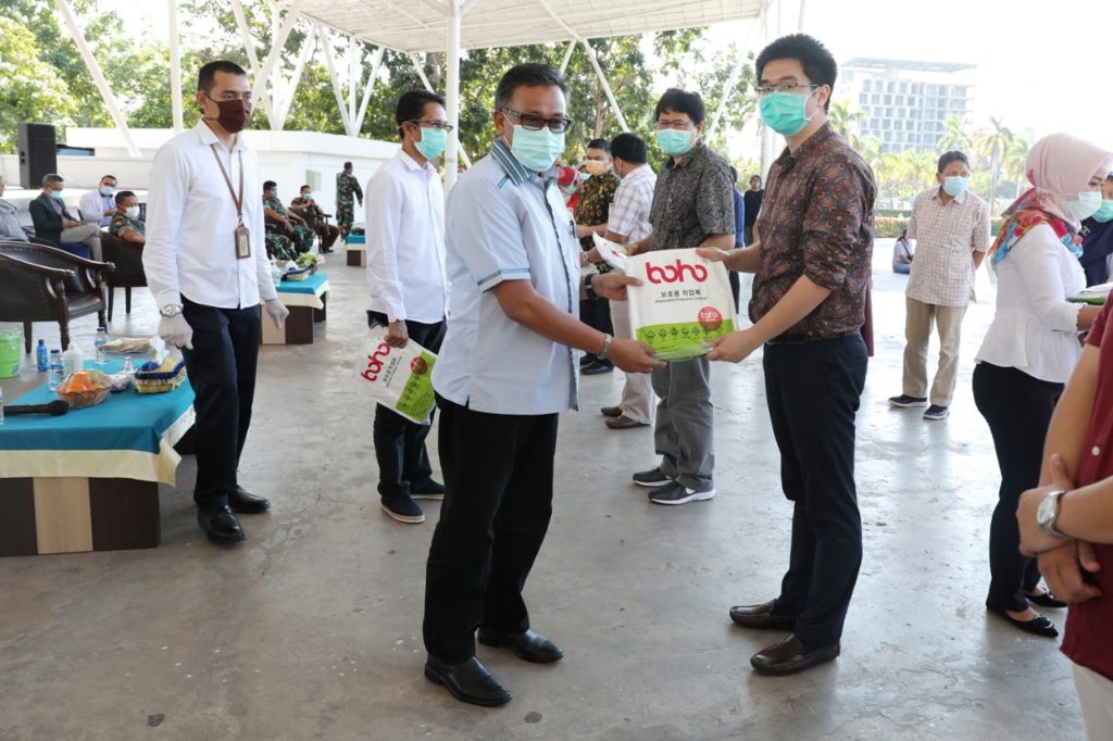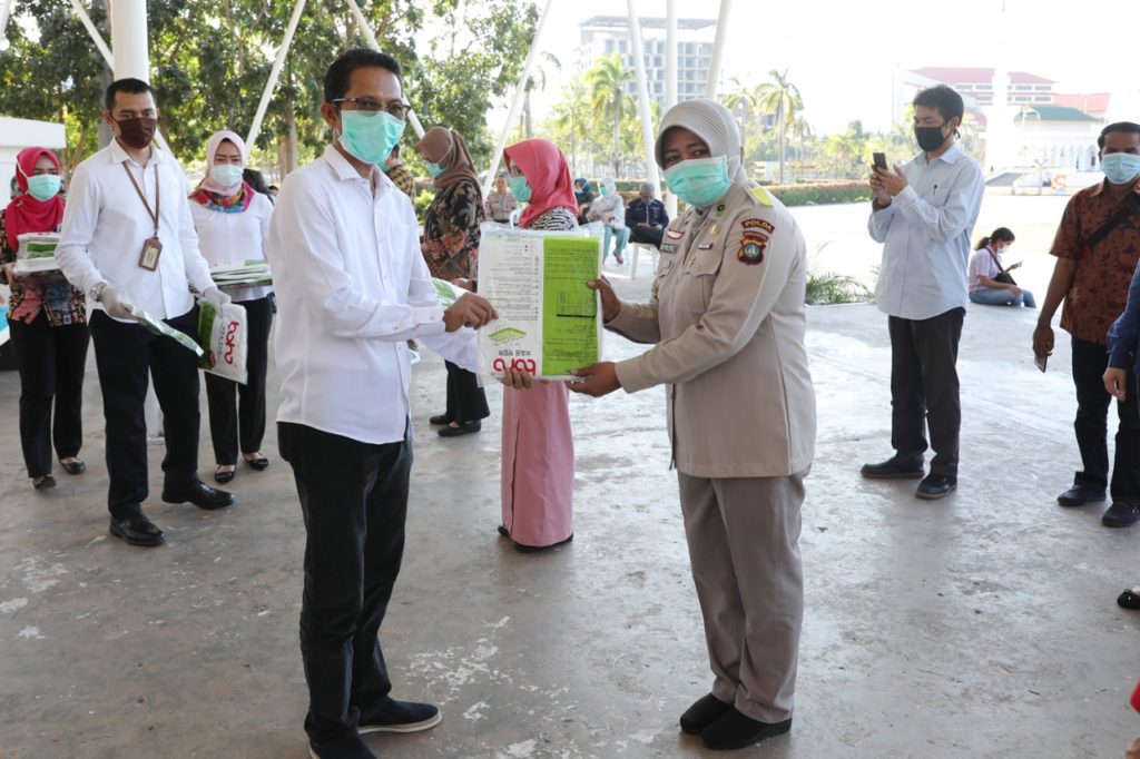 Bantuan diserahkan langsung oleh Plt Gubernur Kepri, Isdianto kepada Wali Kota Batam, Muhammad Rudi di Dataran Engku Putri Batam Centre, Batam, Rabu (25/3/2020).