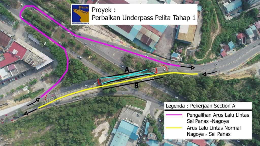 Kasubdit Pembangunan Jalan, Jembatan dan Transportasi Massal BP Batam, Boy Zasmita mengatakan, perbaikan akan dilakukan sebanyak dua tahap. Pada awal perbaikan underpass pada Section A, akan dilakukan penutupan dan pengalihan jalan. Dengan demikian, lalu lintas dari Sei Panas menuju Nagoya akan dialihkan ke Jalan Yos Sudarso, lalu putar arah menuju Nagoya.