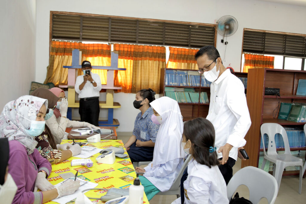“Pagi ini, kami memulai peninjauan di SMP N 41 Batam. Di sini, sebanyak 1.070 pelajar divaksin,” kata Amsakar Achmad, Kamis (8/7/2021).
