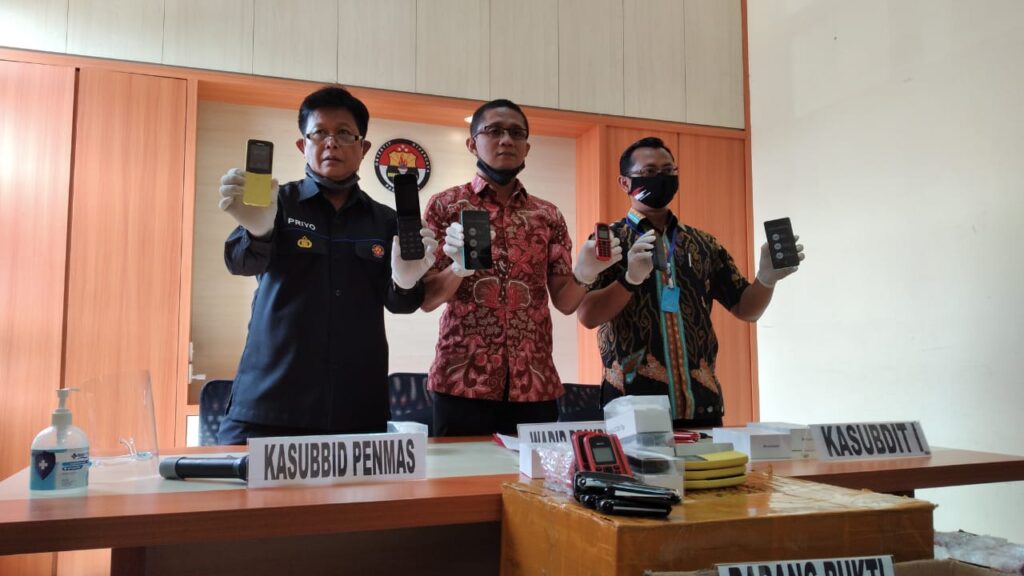 Adapun Handphone yang disita yakni, 410 unit merek Nokia 2720 Flip, 150 unit Nokia 8110, 1.340 unit Nokia 1280, 470 unit Samsung E1272, dan 19 unit Lenovo A7000 plus.