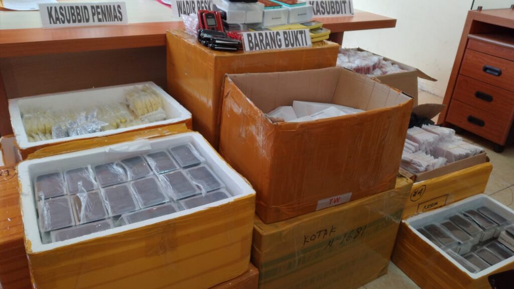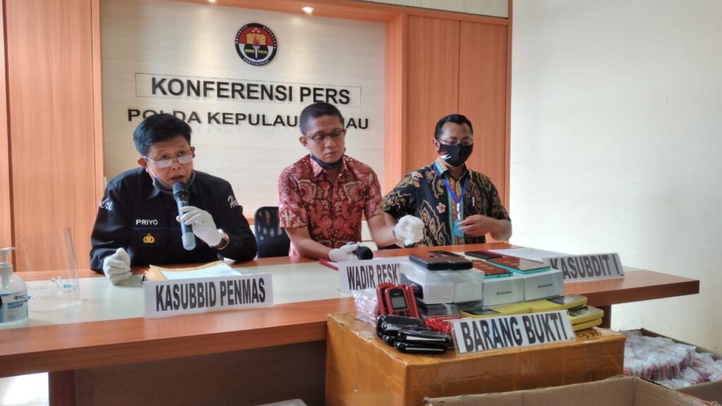 “Awalnya kita mendapat informasi dari masyarakat, kemudian tim melakukan pengecekan dan benar mendapat 2.389 unit Handphone berbagai merek yang tidak memiliki sertifikasi dari Kemenkominfo,” ujar Wadirkrimsus Polda Kepri, AKBP Nugroho, saat jumpa pers, di Mapolda Kepri, Jumat (10/7/2020).