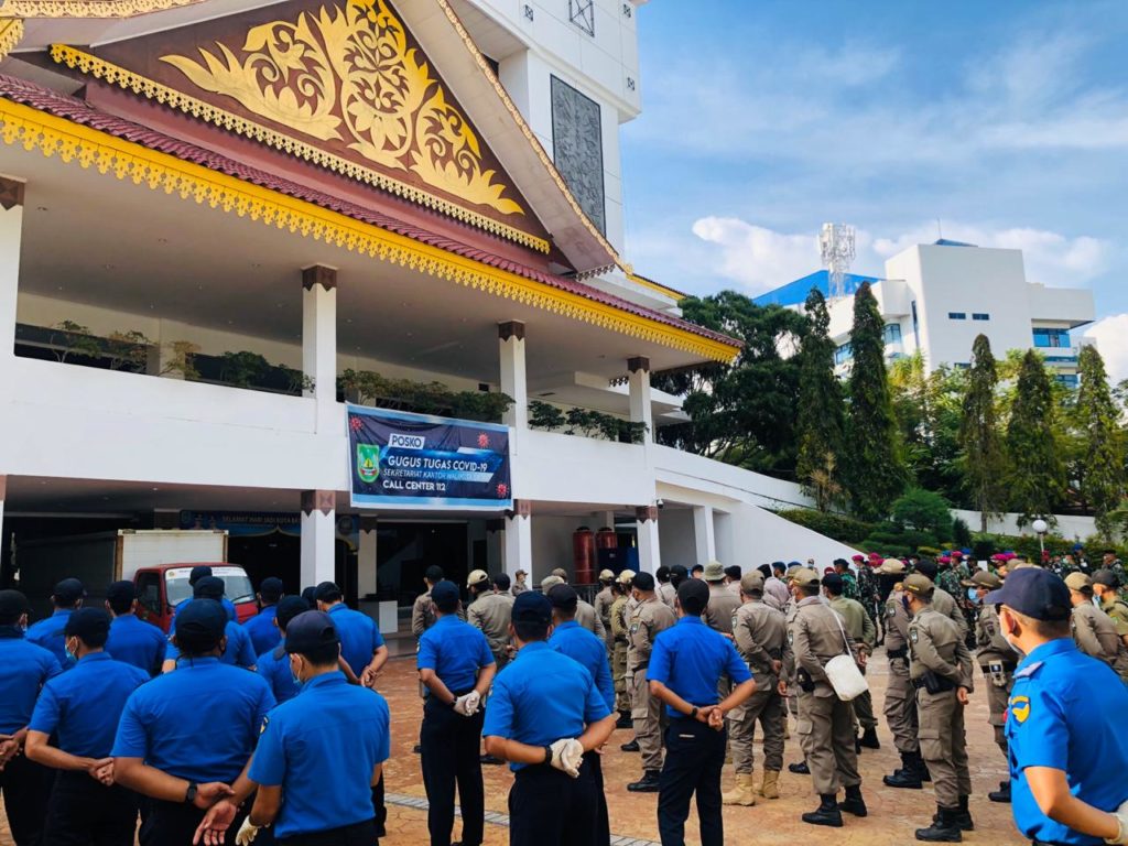 PROBATAM.CO, Batam – Patroli gabungan pada Rabu (29/4/2020) Siang diawali dengan apel gabungan yang dimulai pada pukul 14.15 WIB di halaman Kantor Walikota Batam yang dipimpin oleh Kepala Bidang Trantibum Satpol PP Pemko Batam Imam Tohari.