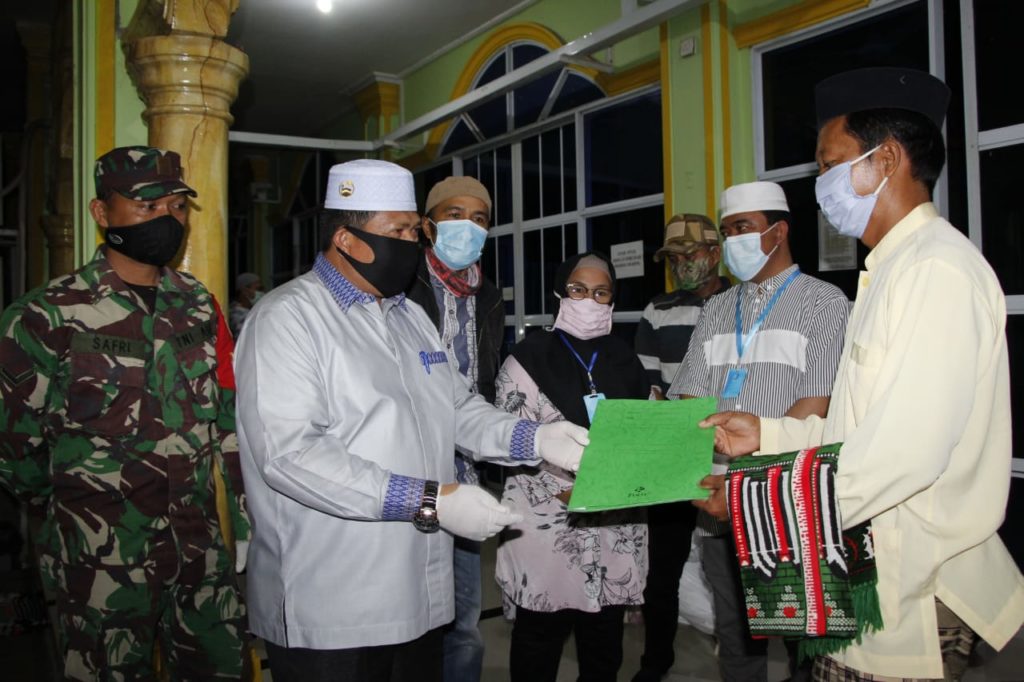 Gustian Riau, Novi Hasmadyastuti dan Zulkarnain tampak melakukam koordinasi dalam kegiatan penyisiran masjid yang masih melakukan sholat tarawih berjamaah, Senin (11/5/2020) malam. (Photo:probatam/iin).