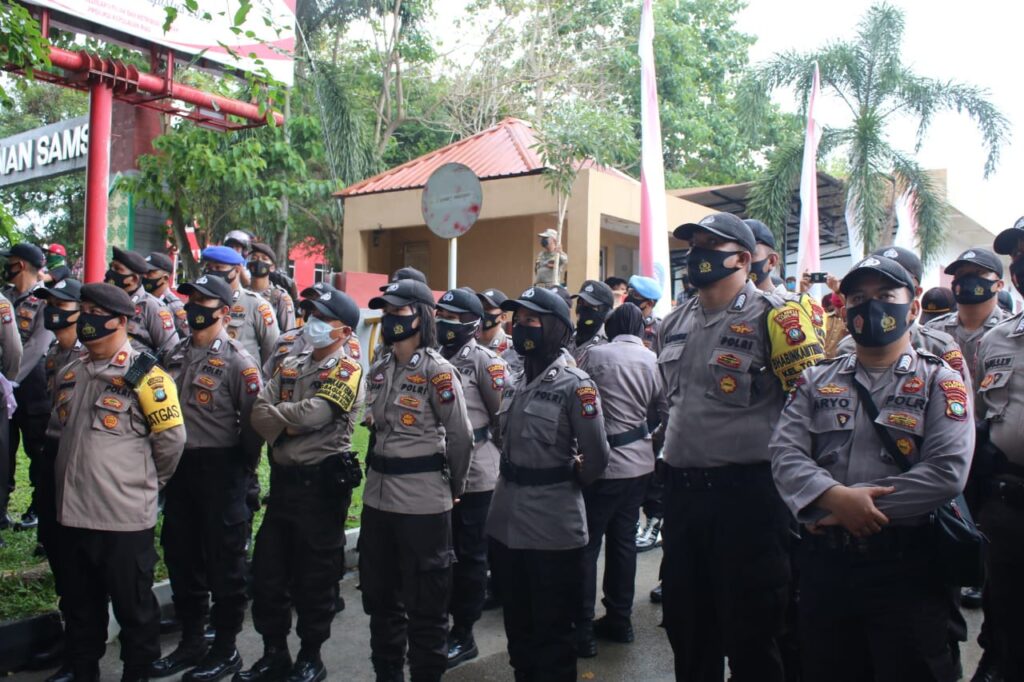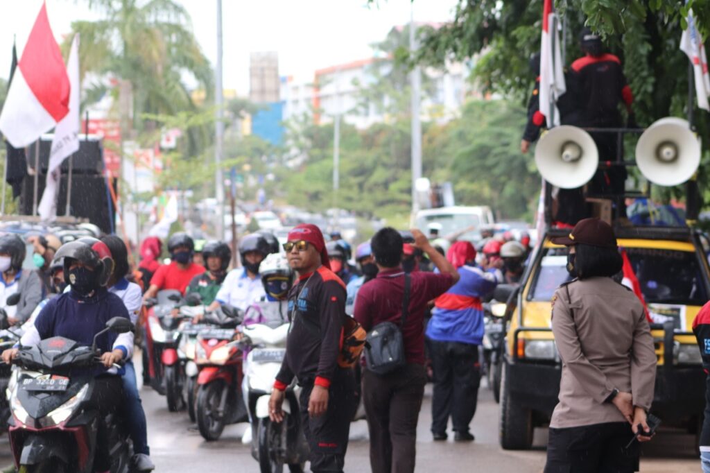 Kapolresta Barelang AKBP Yos Guntur Y.FS, SH, SIK, MH mengatakan pengamanan Aksi Unjuk Rasa pada hari ini yang mengedepankan Tim Negosiator Polwan Polresta Barelang berjalan dengan tertib aman dan lancar, serta tetap mematuhi protokol kesehatan.