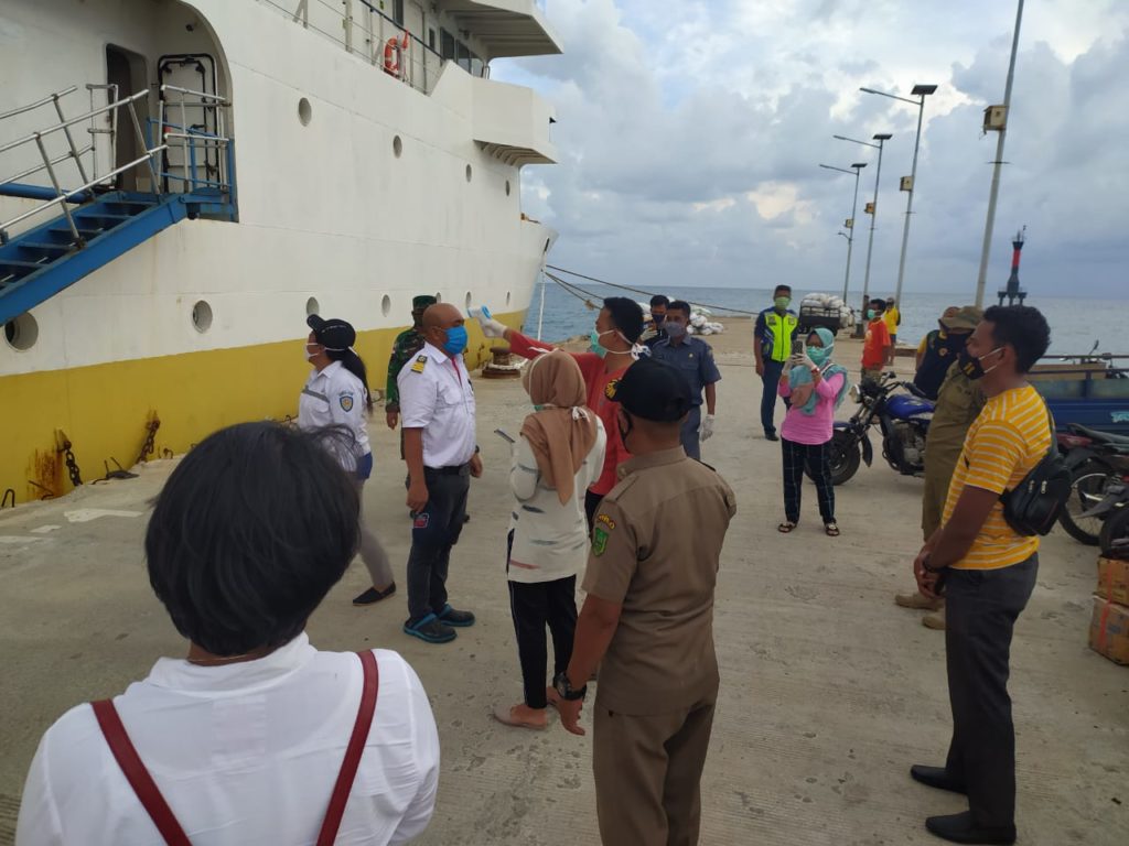 PROBATAM.CO, Natuna- Pada Hari Rabu 10 Juni 2020, Pukul 16.30 Wib Shingga 17.30 Wib di Pelabuhan Kelurahan Sabang Barat, Kecamatan Midai, Tim Satgas Penanggulangan dan Penanganan COVID-19 melaksanakan Kegiatan Pengecekan, Pemeriksaan dan Penyemprotan Cairan Disinfektan Terhadap Penumpang Turun KM. Sabuk Nusantara 80 Tol Laut.