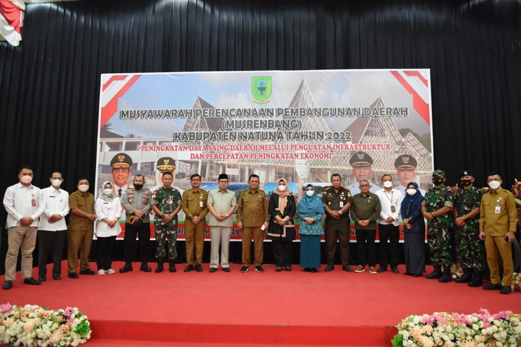 Musrenbang tahun 2022 di Kabupaten Paling Utara Kepri ini mengangkat tema “Peningkatan Daya Saing Daerah Melalui Penguatan Infrastruktur dan Percepatan Peningkatan Ekonomi”. Total anggaran program/kegiatan provinsi di Kabupaten Natuna tahun anggaran 2022 yang dipaparkan adalah sebesar 60,2 miliar.
