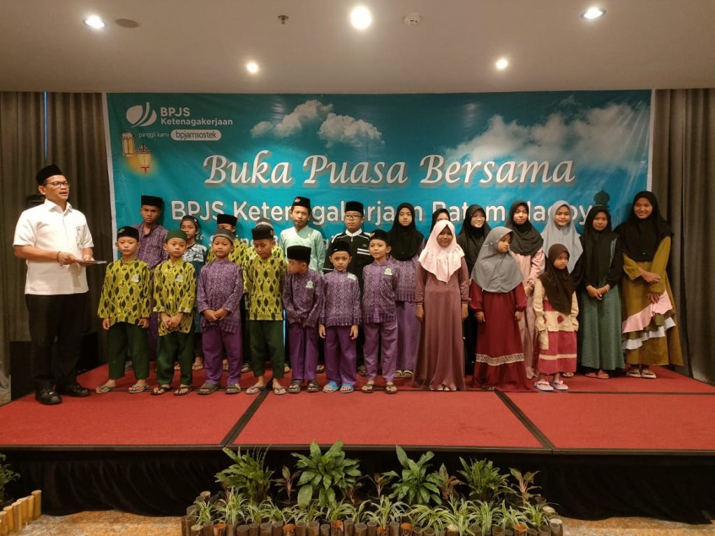 Kepala BPJS Ketenagakerjaan Batam Nagoya, dr Suci Rahmad mengatakan dalam sambutannya berbagi di bulan Ramadhan yang dilakukan oleh BPJS Ketenagakerjaan Batam Nagoya ini merupakan bentuk kepedulian dan tanggung jawab sosial serta pengingat bagi diri kita bahwa sebagian rezeki yang kita peroleh juga terdapat hak orang lain, khususnya anak-anak yatim Piatu,