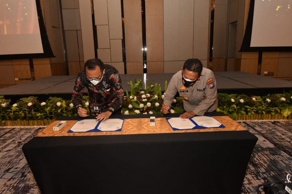 PROBATAM.CO, Batam – Dalam rangka meningkatkan kerjasama, Kapolda Kepri Irjen Pol Dr. Aris Budiman, M.Si., melaksanakan penandatanganan pedoman kerja dalam rangka mendukung pelaksanaan tugas dan kewenangan Bank Indonesia di Hotel Marriott Harbour Bay, Batu Ampar, Kota Batam, Selasa, (9/11/2021).