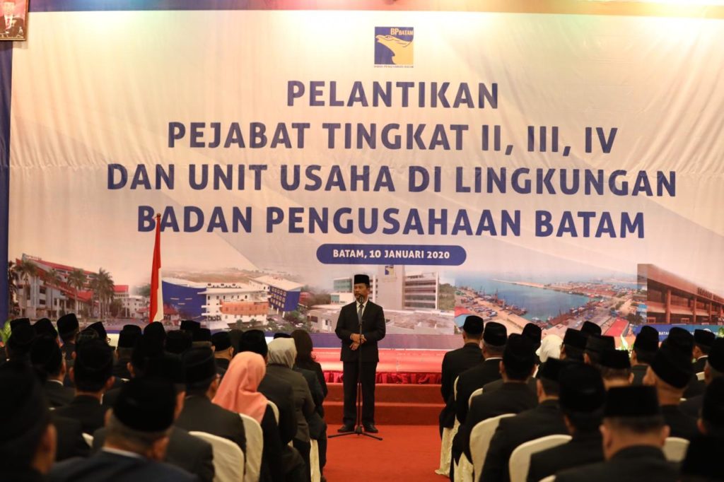 PROBATAM.CO, Batam – Untuk peningkatan optimalisasi kinerja dan pelayanan Badan Pengusahaan Batam, Kepala BP Batam Muhammad Rudi melantik pejabat tingkat II, III, dan IV di lingkungan BP Batam, pada Jumat (10/1) sore, di Grand Ballroom Harmoni One, Batam Centre.