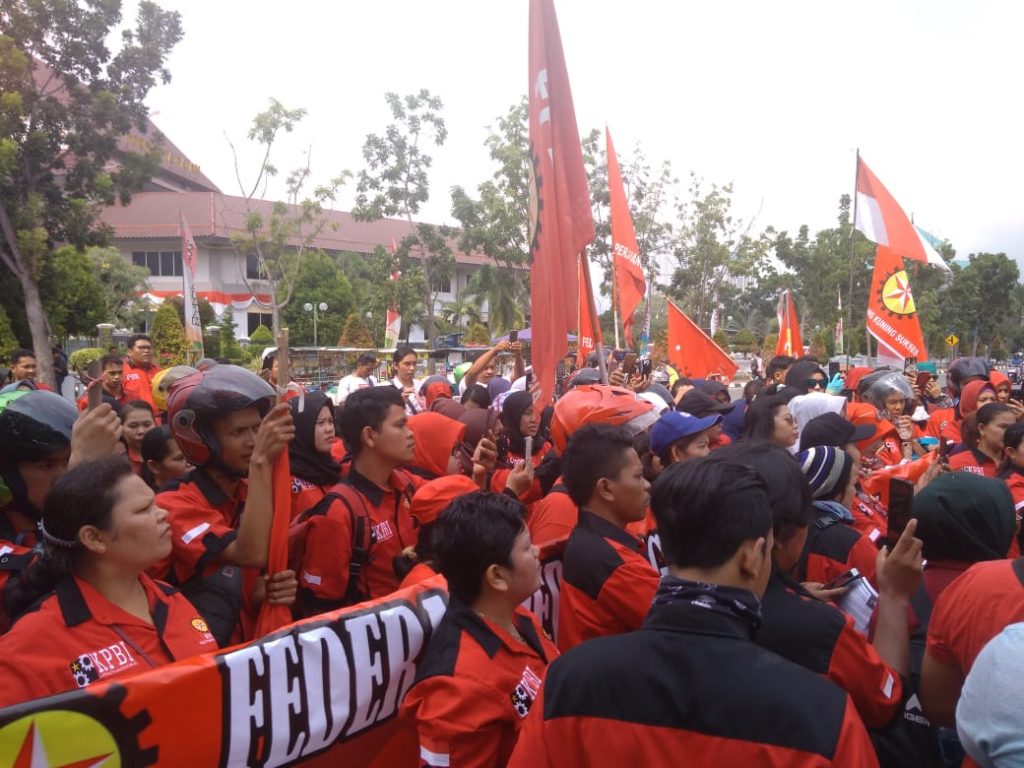 PROBATAM.CO, Batam – Sejumlah para buruh yang tergabung dalam Federasi Perjuangan Buruh Indonesia (FPBI) dan Konfederasi Persatuan Buruh Indonesia(KPBI) kota batam melakukan aksi unjuk rasa di depan kantor Pemko Batam, pada Selasa (27/8) pagi.