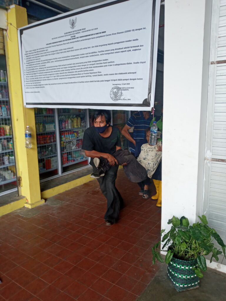 Empat rekan korban mengotong Ucok untuk dilarikan ke rumah sakit mendapatkan pertolongan medis, Sabtu (4/7/2020). (Photo:probatam)