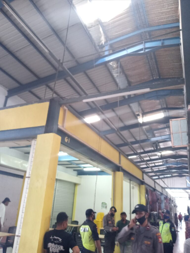 Tampak dua personel Polsek Sekupang sedang di TKP Pasar Tiban Center, Sabtu (4/3/2020).(photo:probatam)