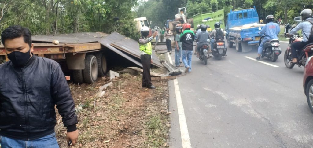 Korban yang sempat tergeletak dibantu dan diboyong warga dilarikan ke rumah sakit, petugas kepolisian ikut mengevakuasi korban dan mengevakuasi kenderaan trailer yang bermuatan besi plat bajanya, sebagian jatuh di pinggir jalan raya.