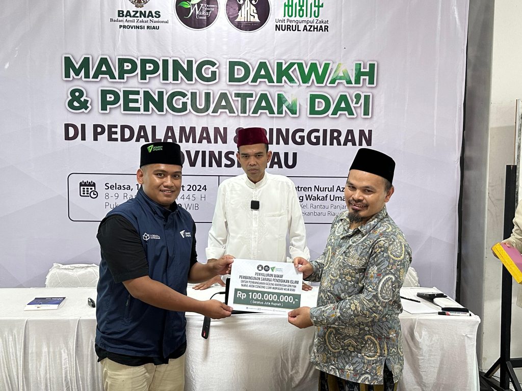 Sebagai bagian dari ikhtiar mengurai sebagian permasalahan dakwah pedalaman, YTWU serahkan Wakaf Pembangunan Sarana Pendidikan Islam kepada Ustadz Haikal Rahman, Dai Cordofa yang berdakwah untuk suku Anak Laut, di Concong Kabupaten Indragiri Hilir Riau, senilai Rp 100.000.000 (Seratus Juta Rupiah).