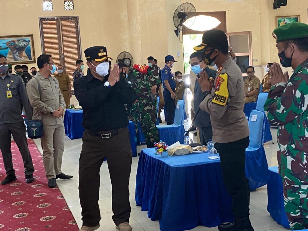 PROBATAM.CO, Natuna – Kapolres Natuna AKBP Ike Krisnadian, S.IK., M.Si menghadiri kegiatan Rapat Koordinasi Kesiapan Pelaksanaan Pilkada 2020 dan Penanganan Covid-19 di Kabupten Natuna serta Penyerahan Bantuan 100 ribu Masker.