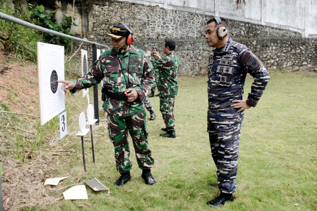 Beranda / Tanjung Pinang / Uji Kemahiran Menembak Pistol, Prajurit Lantamal IV Tanjungpinang Latihan Binoplat