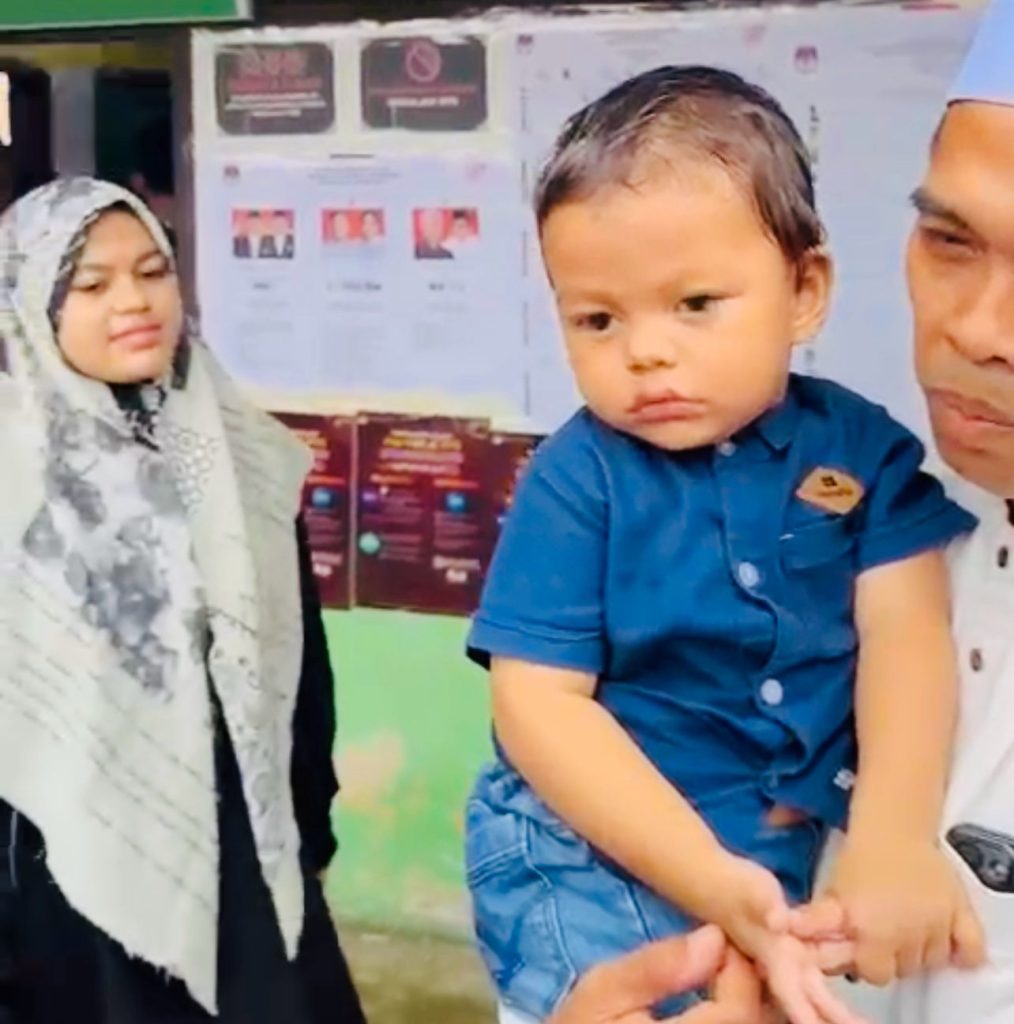 Pantauan wartawan, UAS datang ke TPS bersama istri, Ustadzah Fatimah Az-Zahra, sekitar pukul 09.30 WIB. Mengenakan pakaian koko putih dan kupiah putih, UAS tampak keluar dari bilik suara sambil menggendong Samy, sang buah hati.