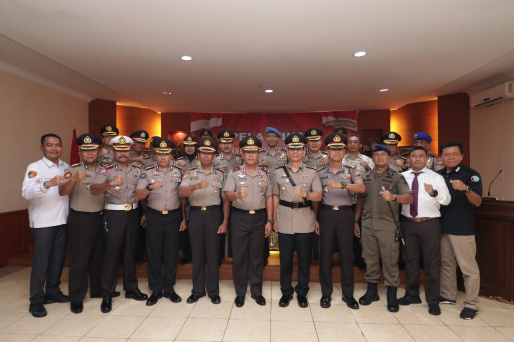 Wakapolda Kepri Brigjen Yan Fitri Halim photo bersama dengan PJU Polda Kepri dan perwira lainnya, di Mapolda Kepri, Rabu (11/3/2020). (photo:hms)