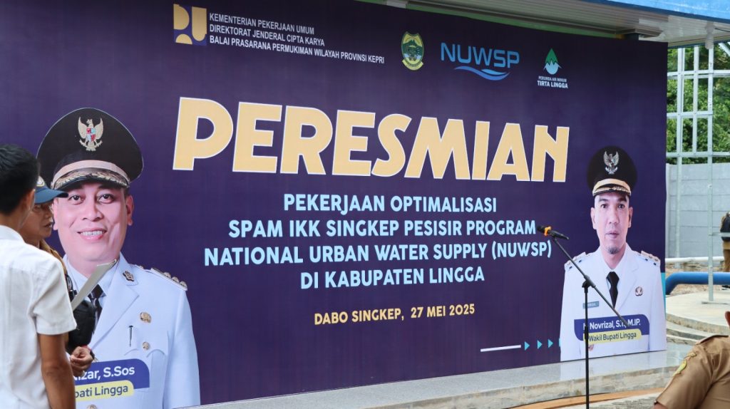 PROBATAM.CO, Lingga — Wakil Kepala Kepolisian Resor (Wakapolres) Lingga, KOMPOL Andi Sutrisno, A.Md., S.H., M.H., mewakili Kapolres Lingga, menghadiri peresmian pekerjaan Optimalisasi Sistem Penyediaan Air Minum (SPAM) IKK Singkep Pesisir. Kegiatan ini merupakan bagian dari program National Urban Water Supply di Kabupaten Lingga, yang berlangsung di wilayah Singkep Pesisir, Selasa (27/05/2025).