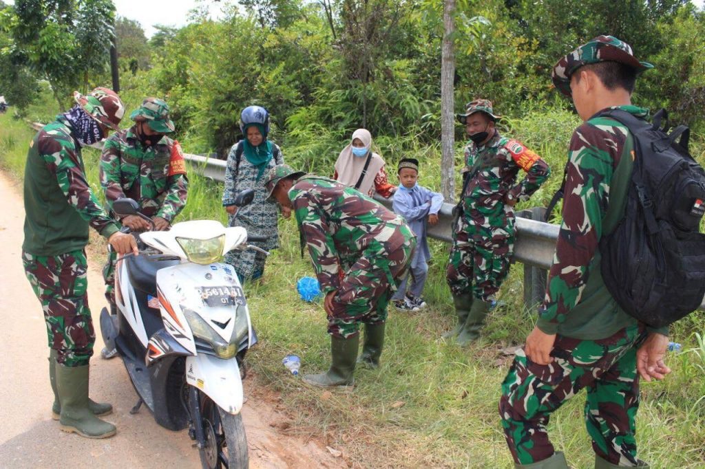 PROBATAM.CO, Batam– Wujud Bahwa TNI dari Rakyat – Kepedulian personil Satgas TMMD Ke-112 Kodim 0316/Batam kepada warga yang sedang mengalami kendala dengan motornya yang mogok di Jalan transbarelang Kampung Teluk Air Kelurahan Setokok,Kecamatan Bulang, Kota Batam, Selasa (21/09/2021)