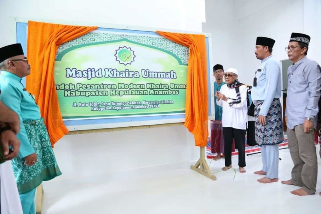 Sekda Anambas didampingi Pengusaha Migas asal Anambas, Ical Long Enon meresmikan mesjid yang dibangun di Komplek pesantren Khairah Ummah Rintis Desa Tarempa Selatan. (photo:probatam/edy)