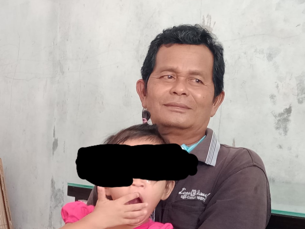 Putri Aisyah dalam dekapan sang ayah tercinta, Sukateman. Sebelah mata kirinya tidak berfungsi butuh operasi dan penanganan yang serius sedang mendamba uluran tangan dermawan. (Photo: istimewa)